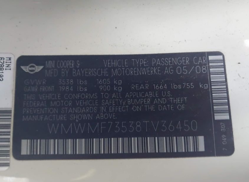 - VIN: WMWMF73538TV36450