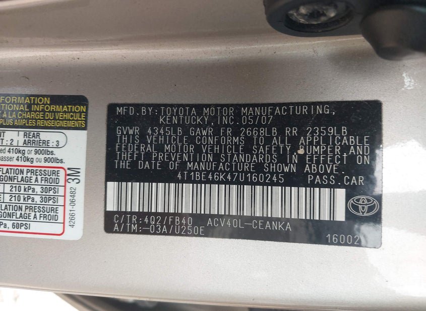 - VIN: 4T1BE46K47U160245