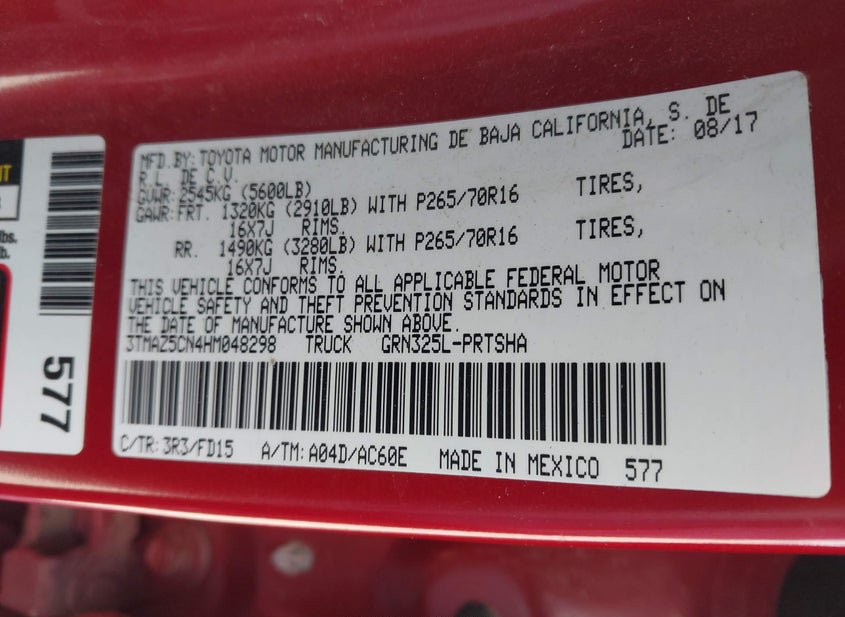 - VIN: 3TMAZ5CN4HM048298