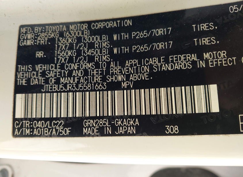 - VIN: JTEBU5JR3J5581663