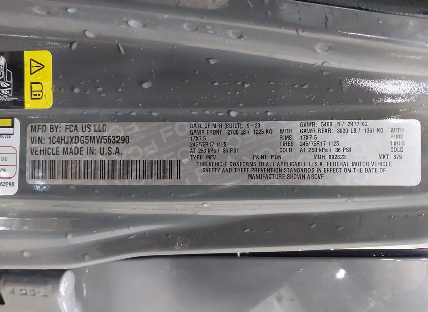 - VIN: 1C4HJXDG5MW563290