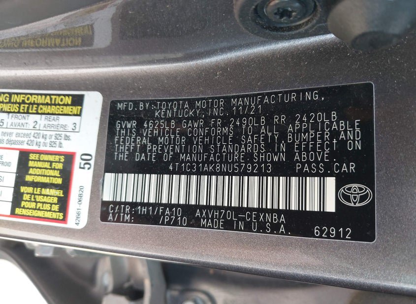 - VIN: 4T1C31AK8NU579213