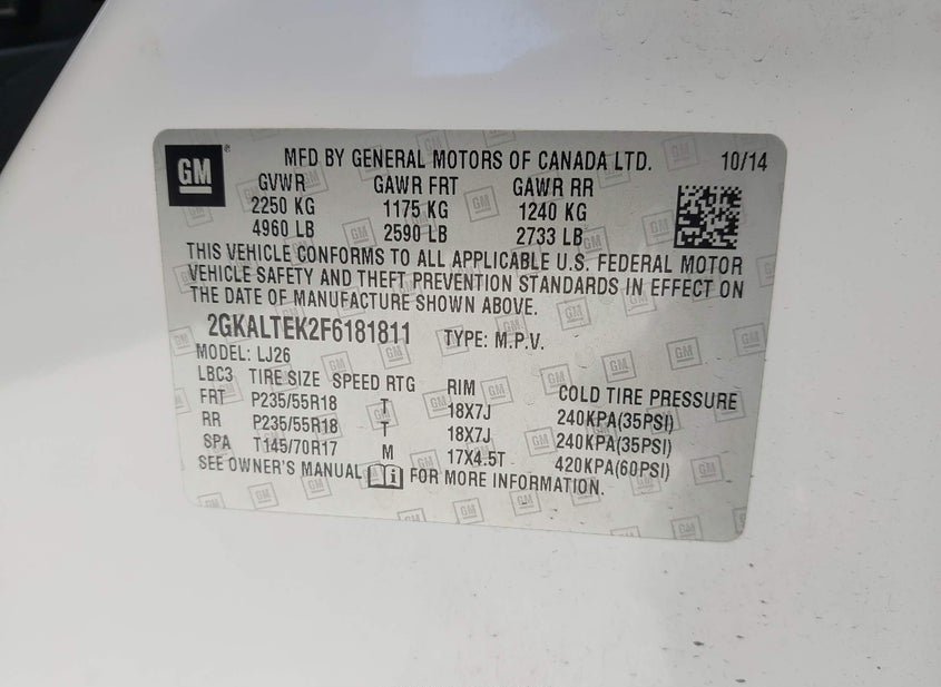 - VIN: 2GKALTEK2F6181811