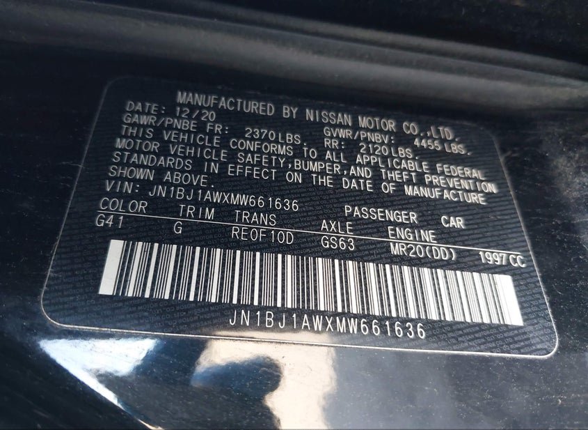 - VIN: JN1BJ1AWXMW661636