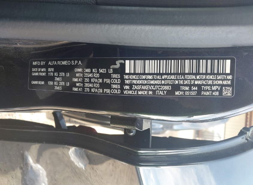 - VIN: ZASFAKEVXJ7C20883