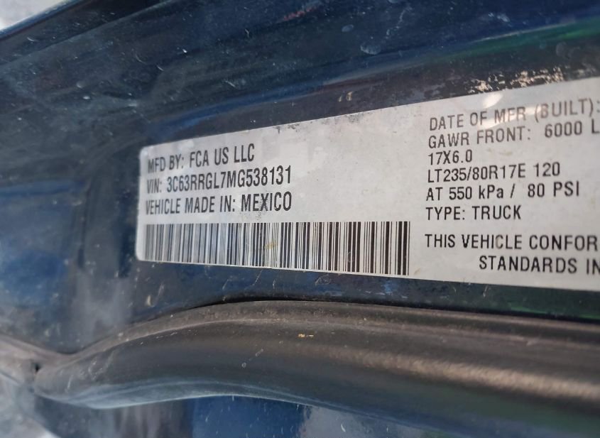 - VIN: 3C63RRGL7MG538131