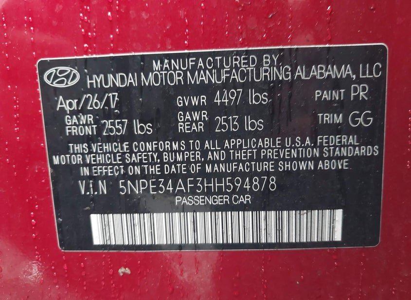 - VIN: 5NPE34AF3HH594878