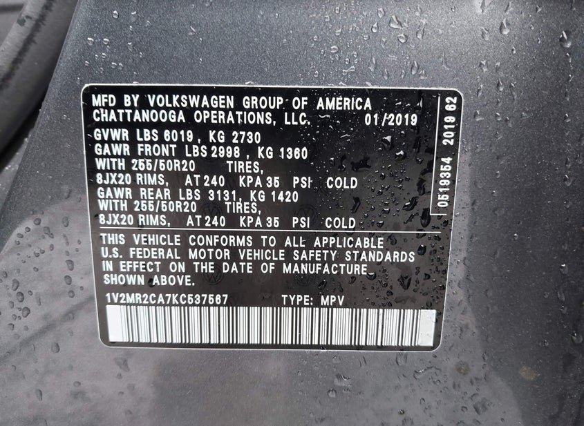 - VIN: 1V2MR2CA7KC537567