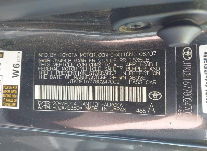 - VIN: JTKDE167780247002