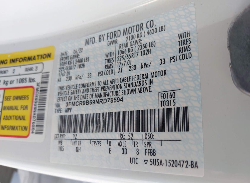 - VIN: 3FMCR9B69NRD76594