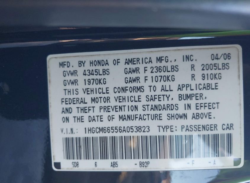 - VIN: 1HGCM66556A053823
