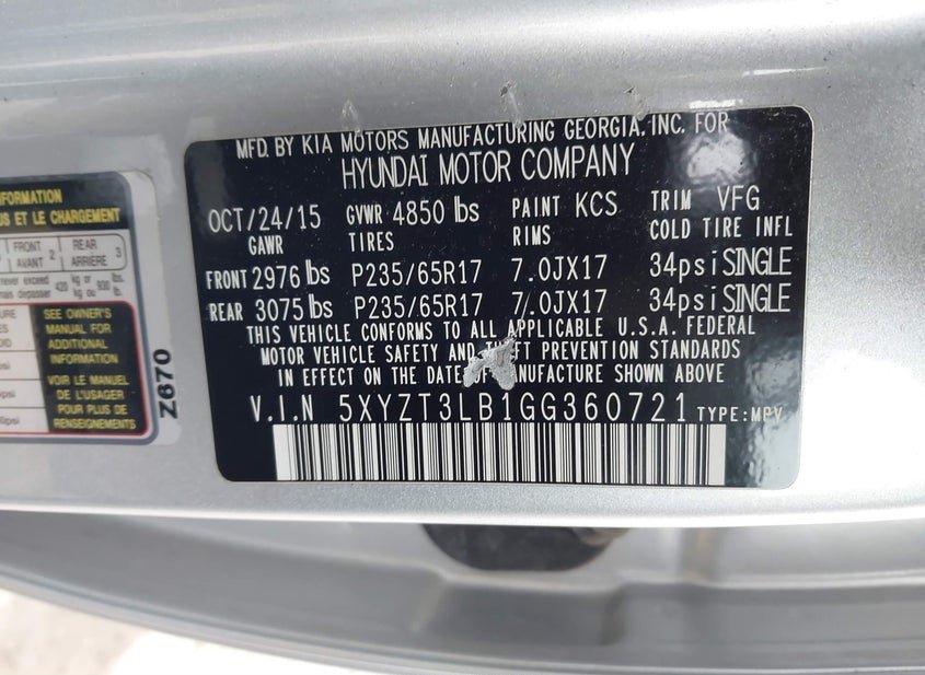 - VIN: 5XYZT3LB1GG360721