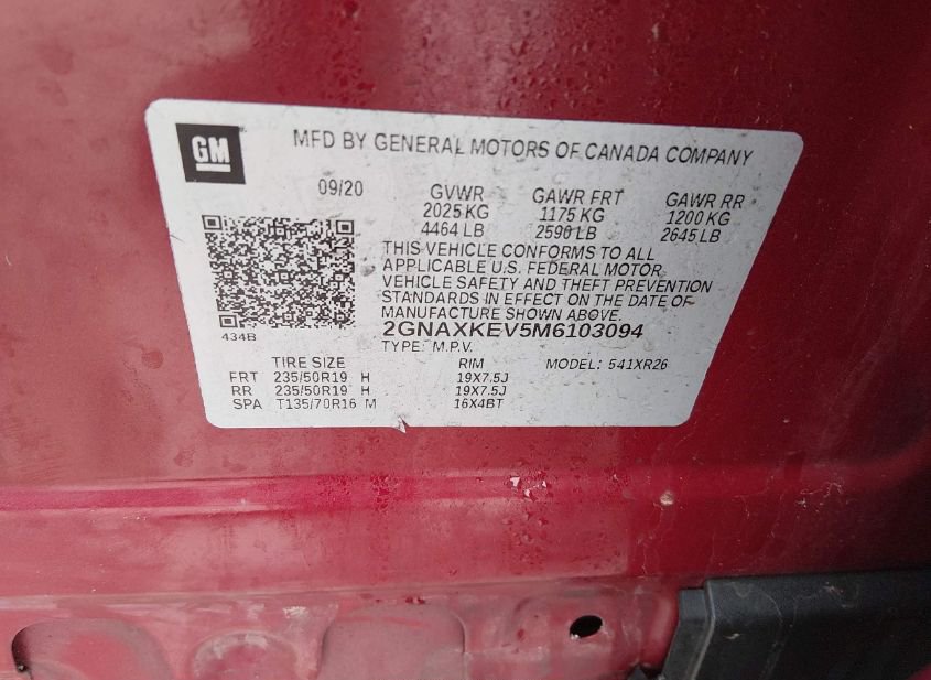 - VIN: 2GNAXKEV5M6103094