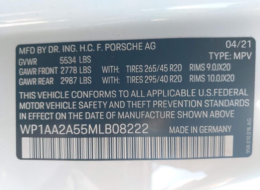 - VIN: WP1AA2A55MLB08222