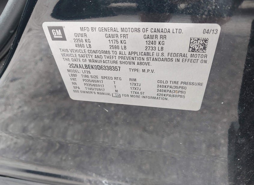 - VIN: 2GNALBEK0D6338357