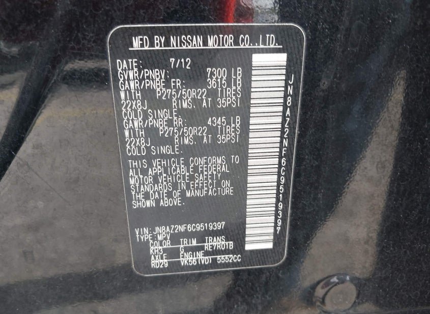 - VIN: JN8AZ2NF6C9519397
