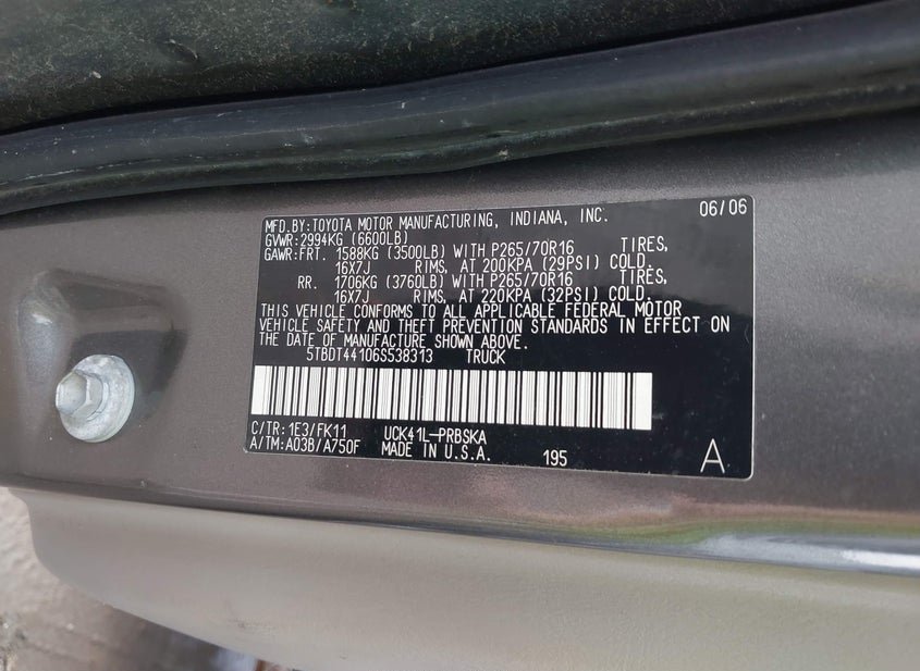 - VIN: 5TBDT44106S538313