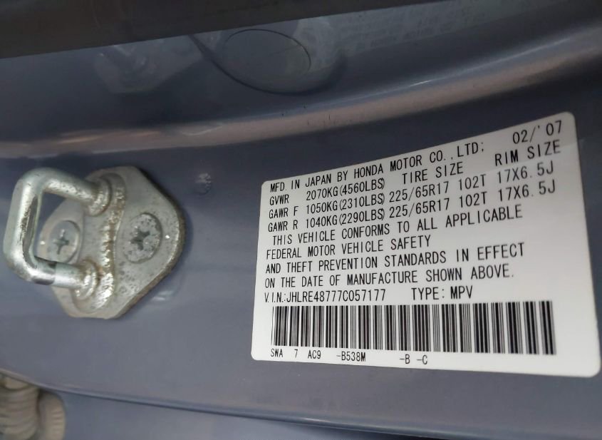 - Название лота: 2007 HONDA CR-V EX-L