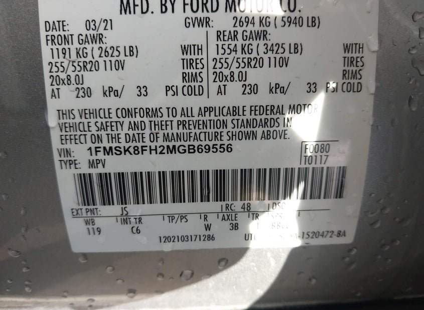- VIN: 1FMSK8FH2MGB69556