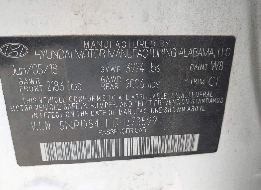 - VIN: 5NPD84LF1JH373599
