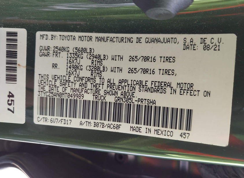 - VIN: 3TYCZ5AN0MT049989