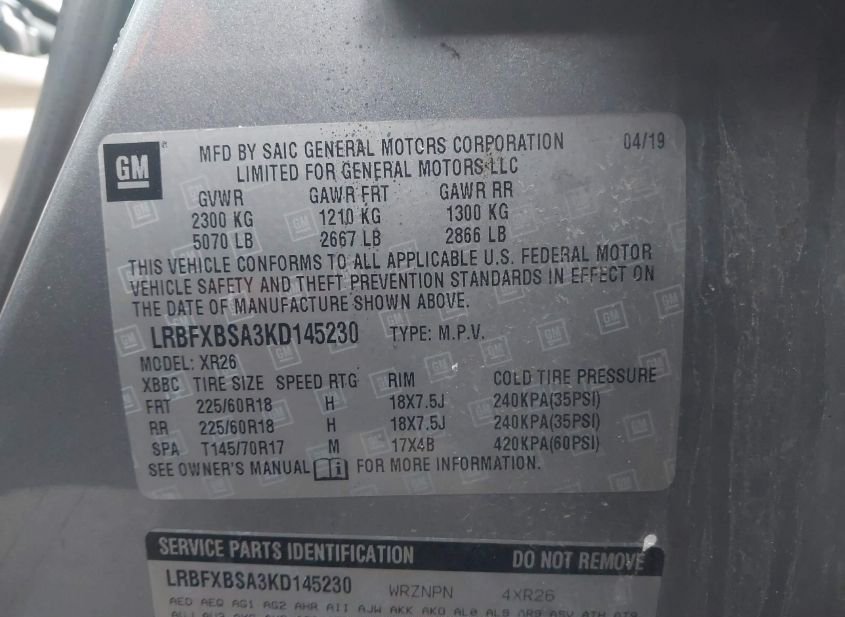 - VIN: LRBFXBSA3KD145230