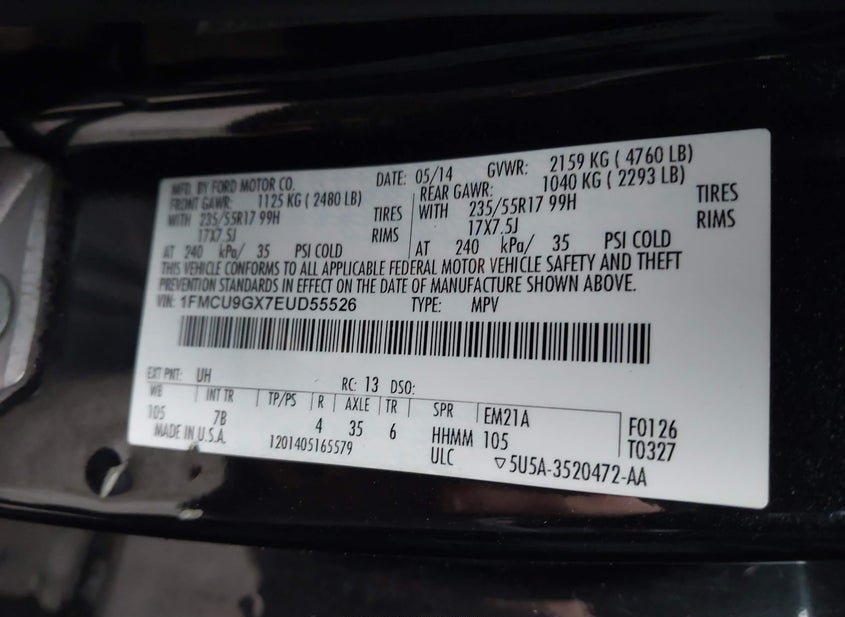 - VIN: 1FMCU9GX7EUD55526