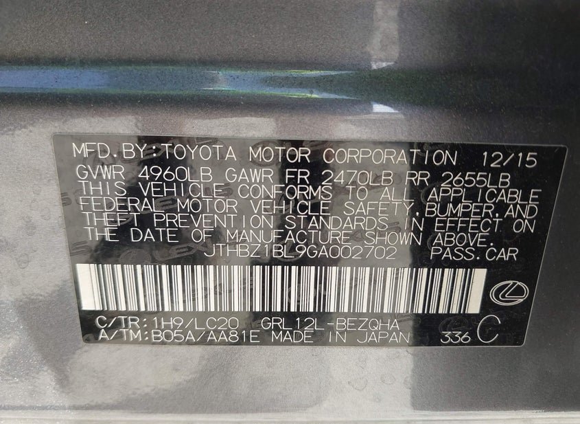 - VIN: JTHBZ1BL9GA002702