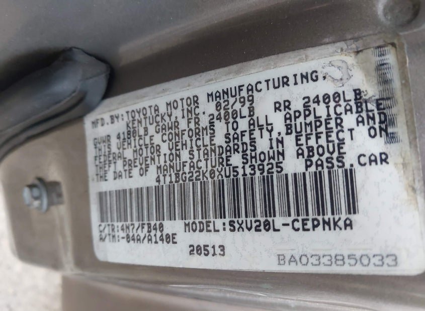 - VIN: 4T1BG22K0XU513925