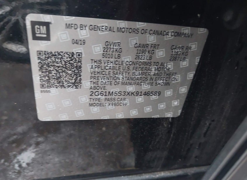 - VIN: 2G61M5S3XK9146589