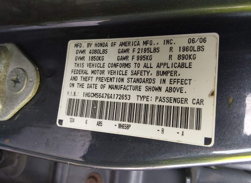 - VIN: 1HGCM56476A172653