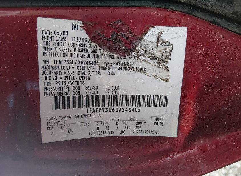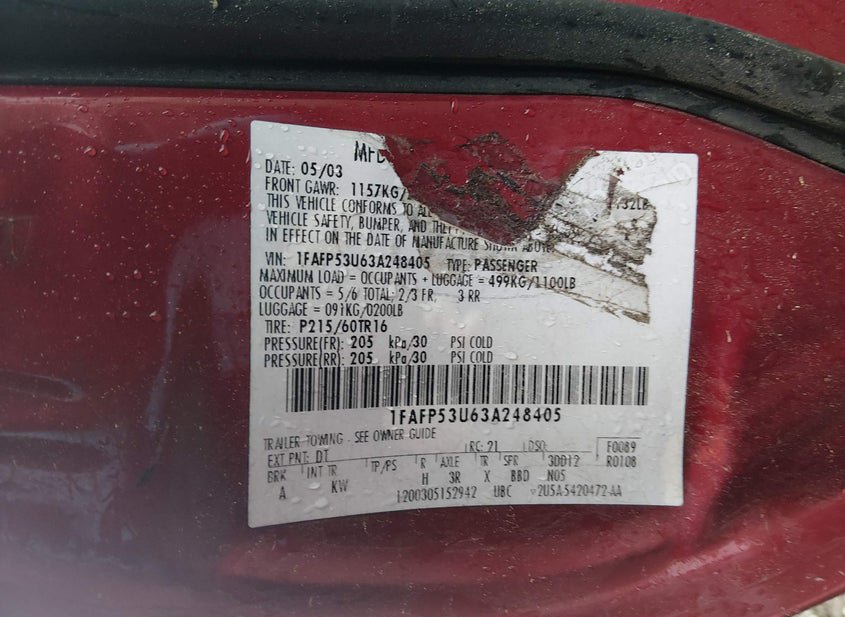 - VIN: 1FAFP53U63A248405