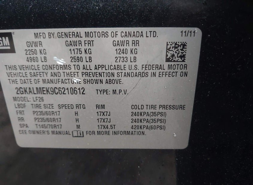 - VIN: 2GKALMEK9C6210612