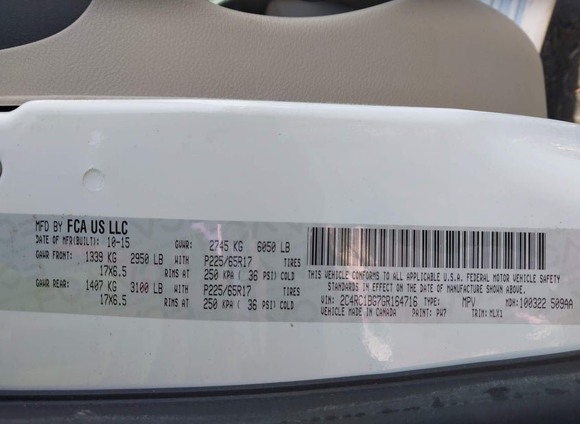 - VIN: 2C4RC1BG7GR164716