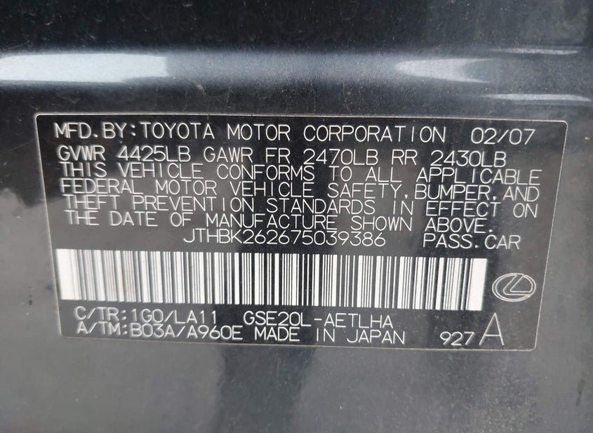 - Название лота: 2007 LEXUS IS 250