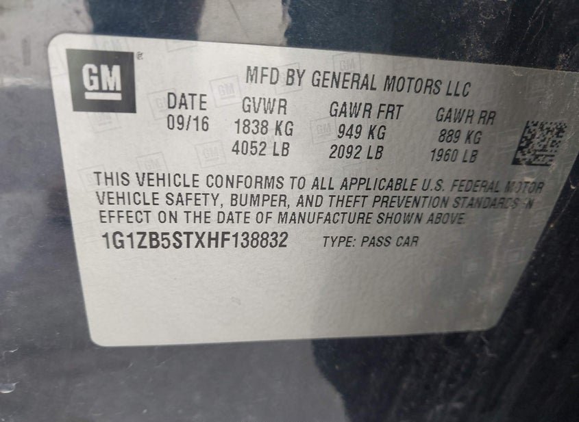 - VIN: 1G1ZB5STXHF138832