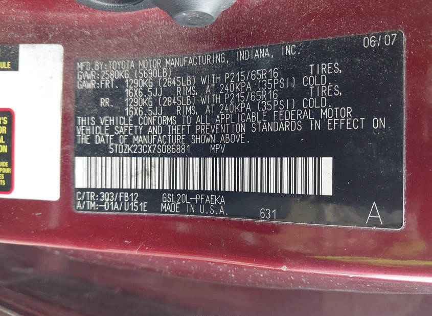 2007 Toyota Sienna 3.5L