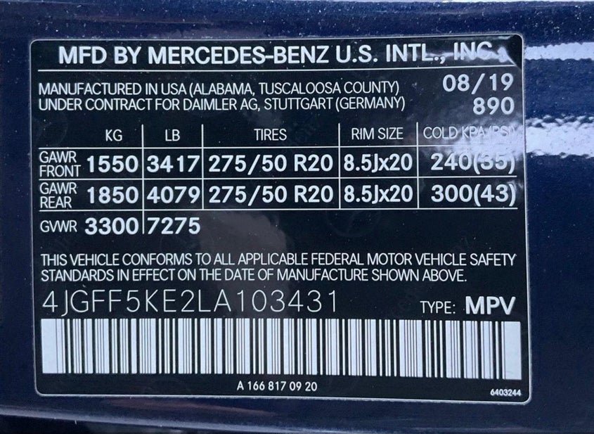 - VIN: 4JGFF5KE2LA103431