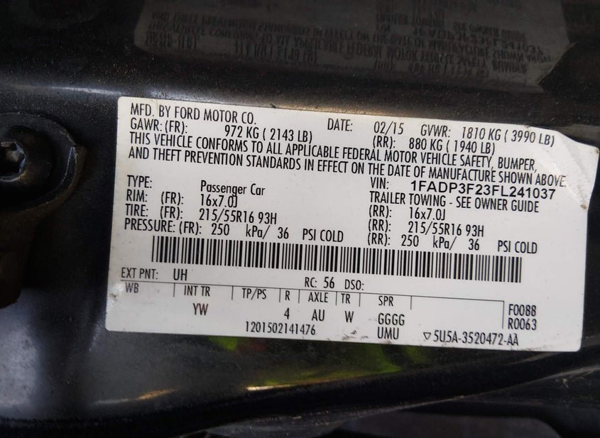 - VIN: 1FADP3F23FL241037
