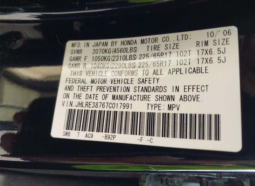 - VIN: JHLRE38767C017991