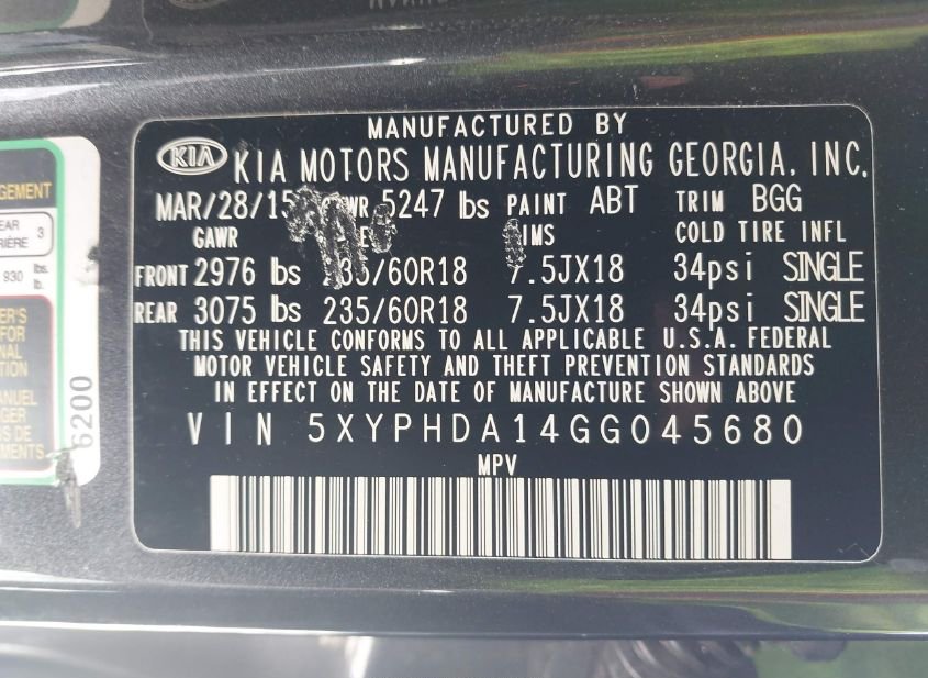 - VIN: 5XYPHDA14GG045680