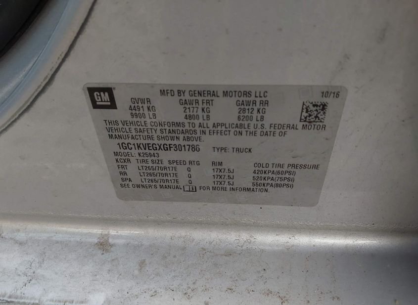 - VIN: 1GC1KVEGXGF301786