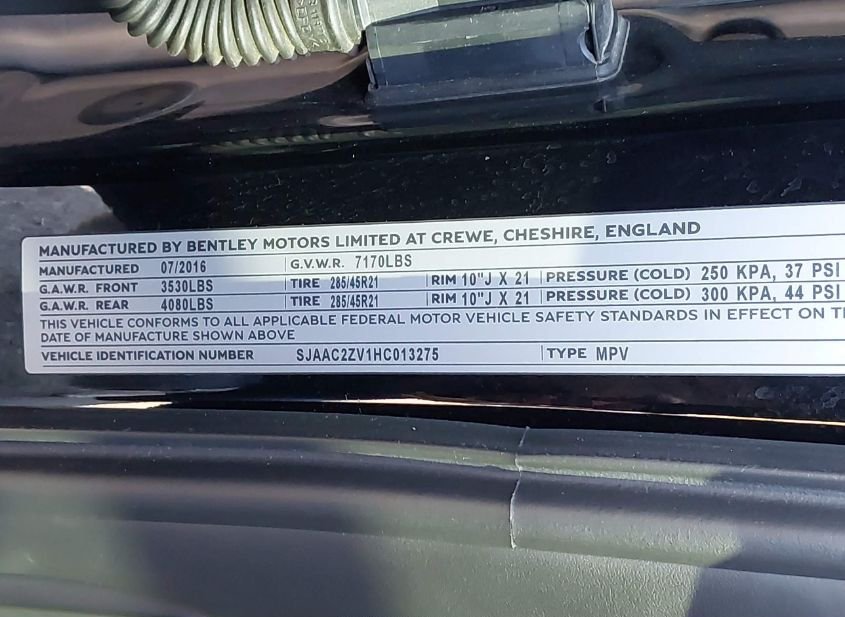 - Название лота: 2017 BENTLEY BENTAYGA W12/W12 FIRST EDITION