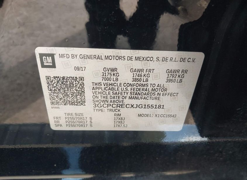 - VIN: 3GCPCRECXJG155181