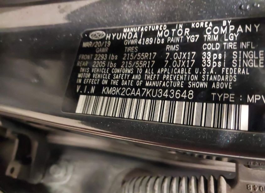 - VIN: KM8K2CAA7KU343648