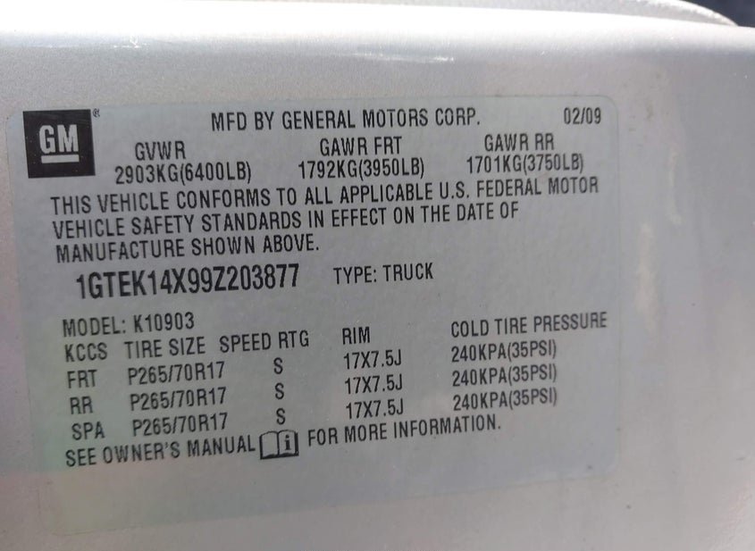 - VIN: 1GTEK14X99Z203877