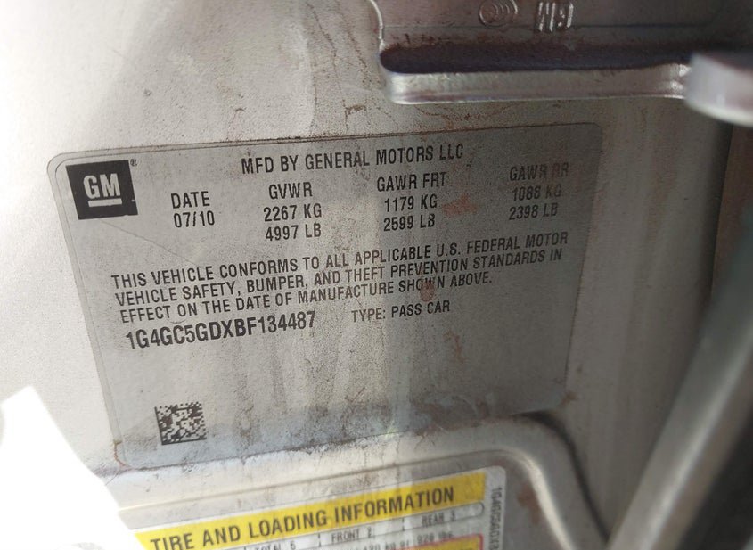 - VIN: 1G4GC5GDXBF134487