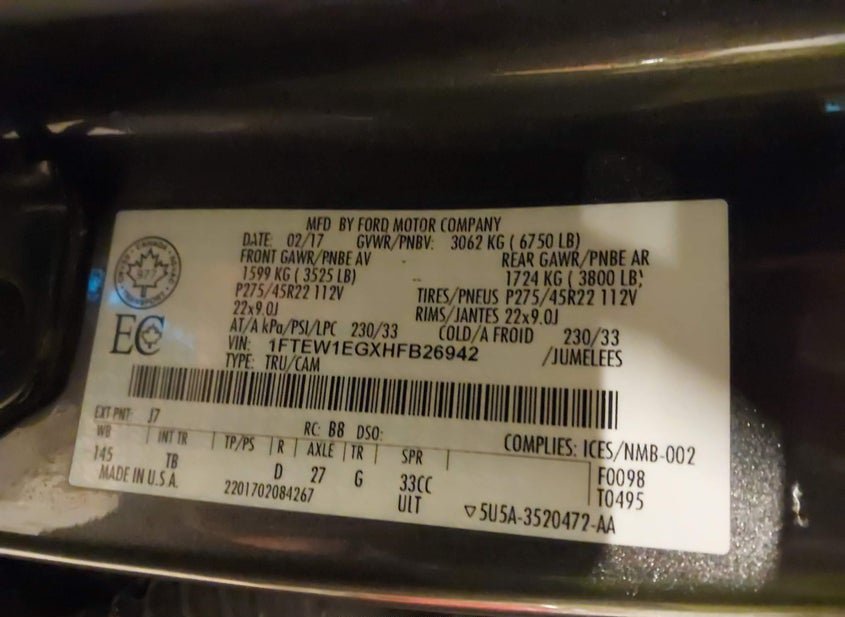 - Название лота: 2017 FORD F-150 LIMITED