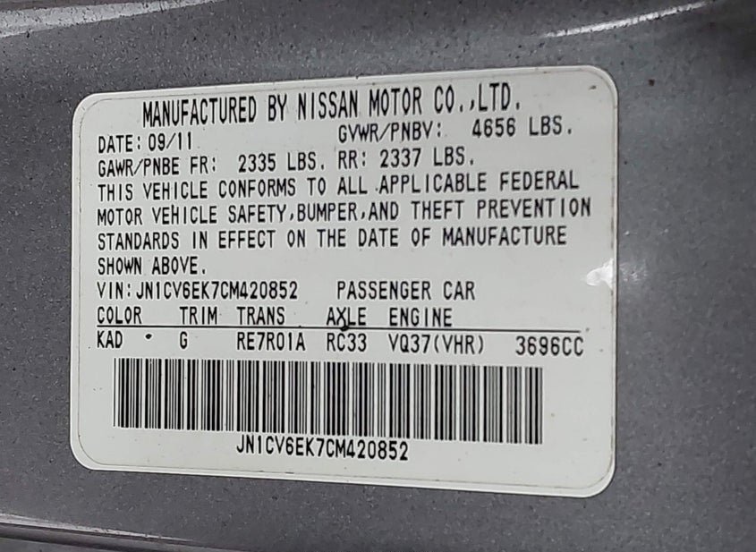 - VIN: JN1CV6EK7CM420852