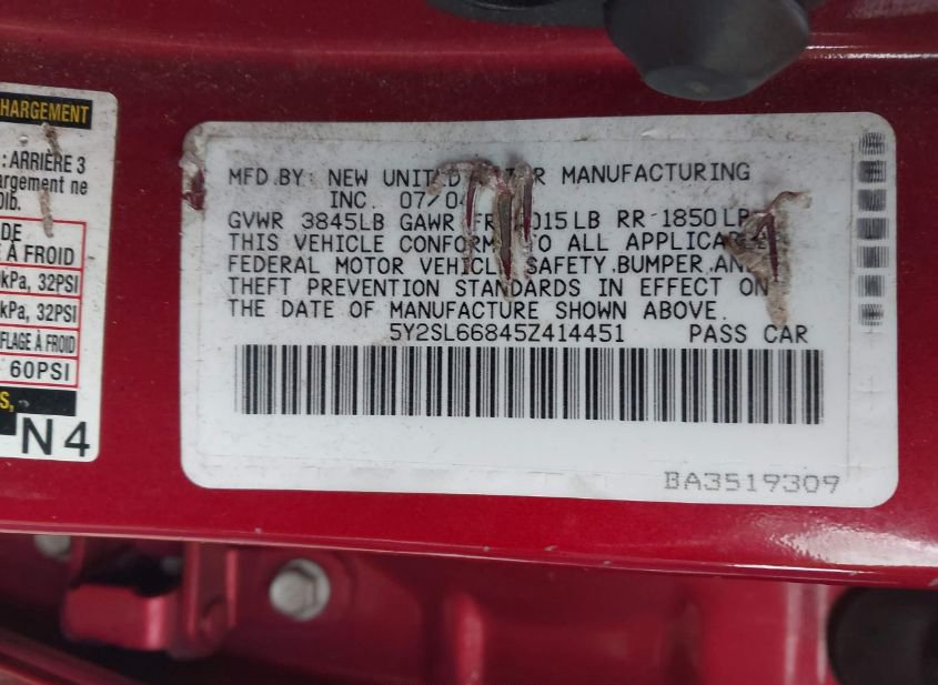 - VIN: 5Y2SL66845Z414451
